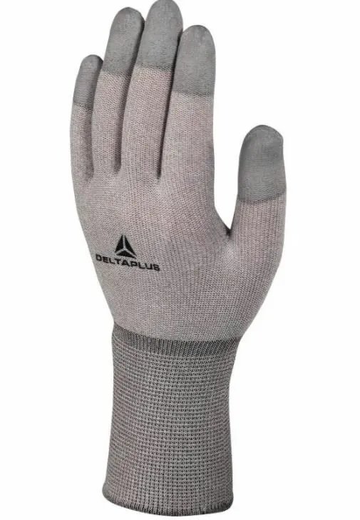 Kootud vask-polüamiid. Sõrmeotsad kaetud PU-ga. Ilma õmblusteta. Väga pehme, hingav ja mugav kinnas täpsust nõudvate tööde jaoks kus nõutud ka ESD kaitse.