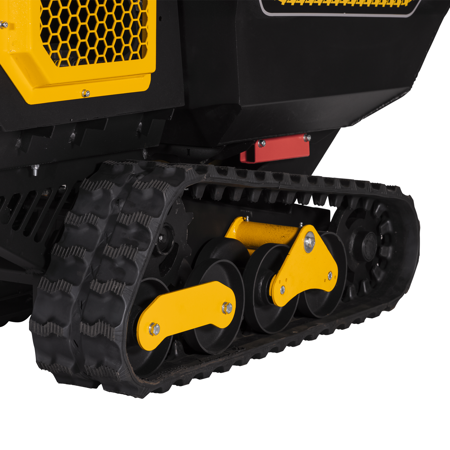 VH-500PRORS kasutab tugevaid kummist roomikuid, mis tagavad suurepärase haarduvuse ebatasasel, pehmel või libedal pinnasel. Roomikvedu ja madal raskuskese annavad masinale hea stabiilsuse ka kallakutel töötamisel. Hüdrauliline kallutussüsteem võimaldab koorma mugavalt ja kiiresti maha laadida, vähendades füüsilist pingutust ja säästes tööaega.