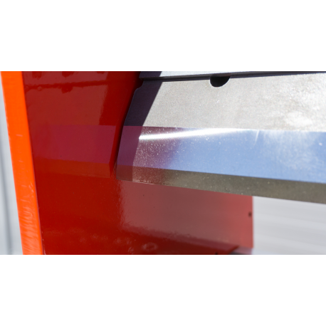 M-150 konstruktsioon on tugev ja jäik, mis võimaldab tal töötada stabiilselt ka suurte koormuste ja pideva kasutuse korral. Lõikemehhanismi keskmes on kvaliteetsed lõiketerad, mis on valmistatud kulumiskindlatest materjalidest ning mõeldud pikaajaliseks kasutamiseks. Terade geomeetria ja paigutus on optimeeritud nii, et lõikamine oleks puhas, ühtlane ja energiatõhus, vähendades samal ajal materjali deformatsiooni.