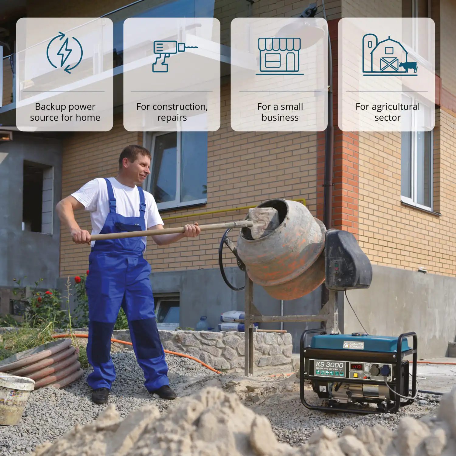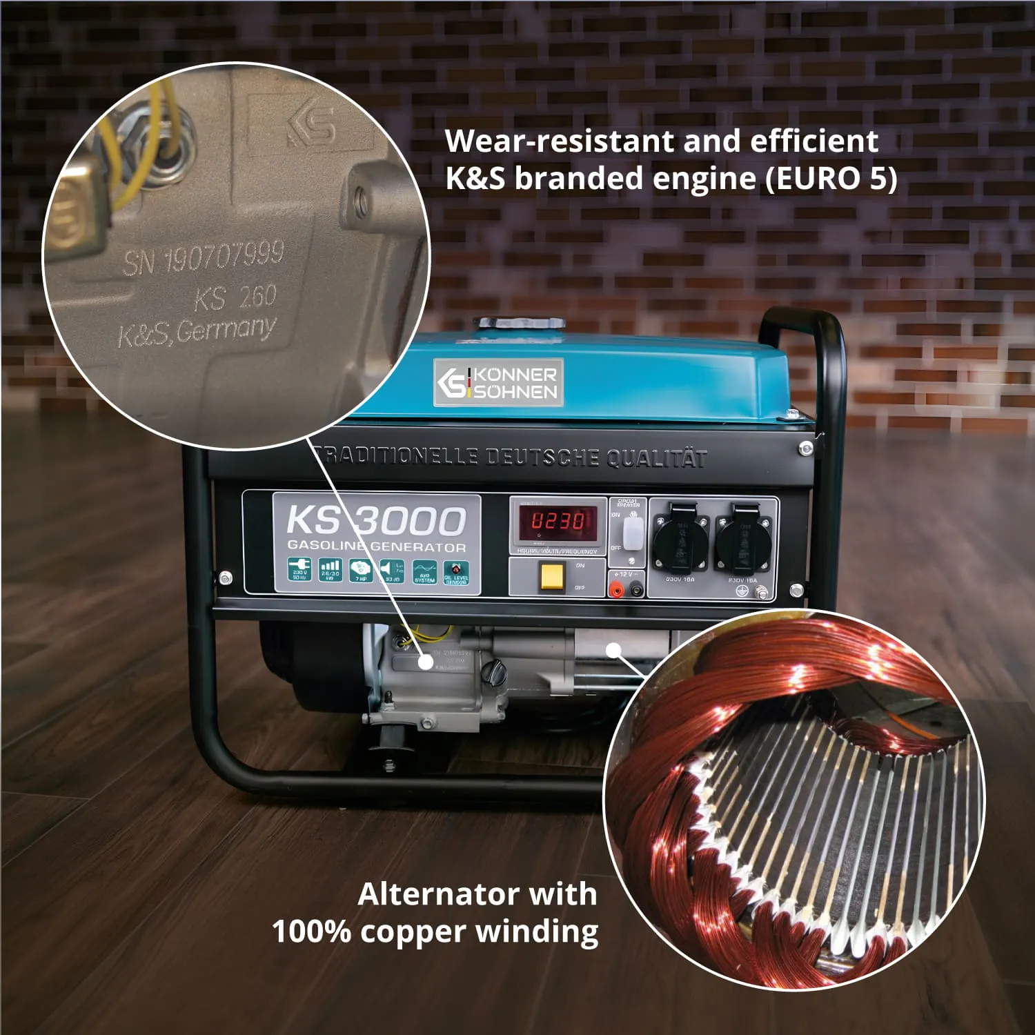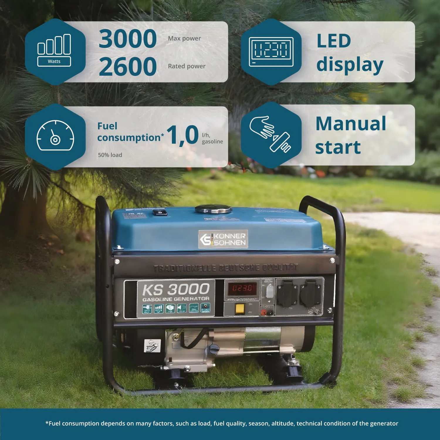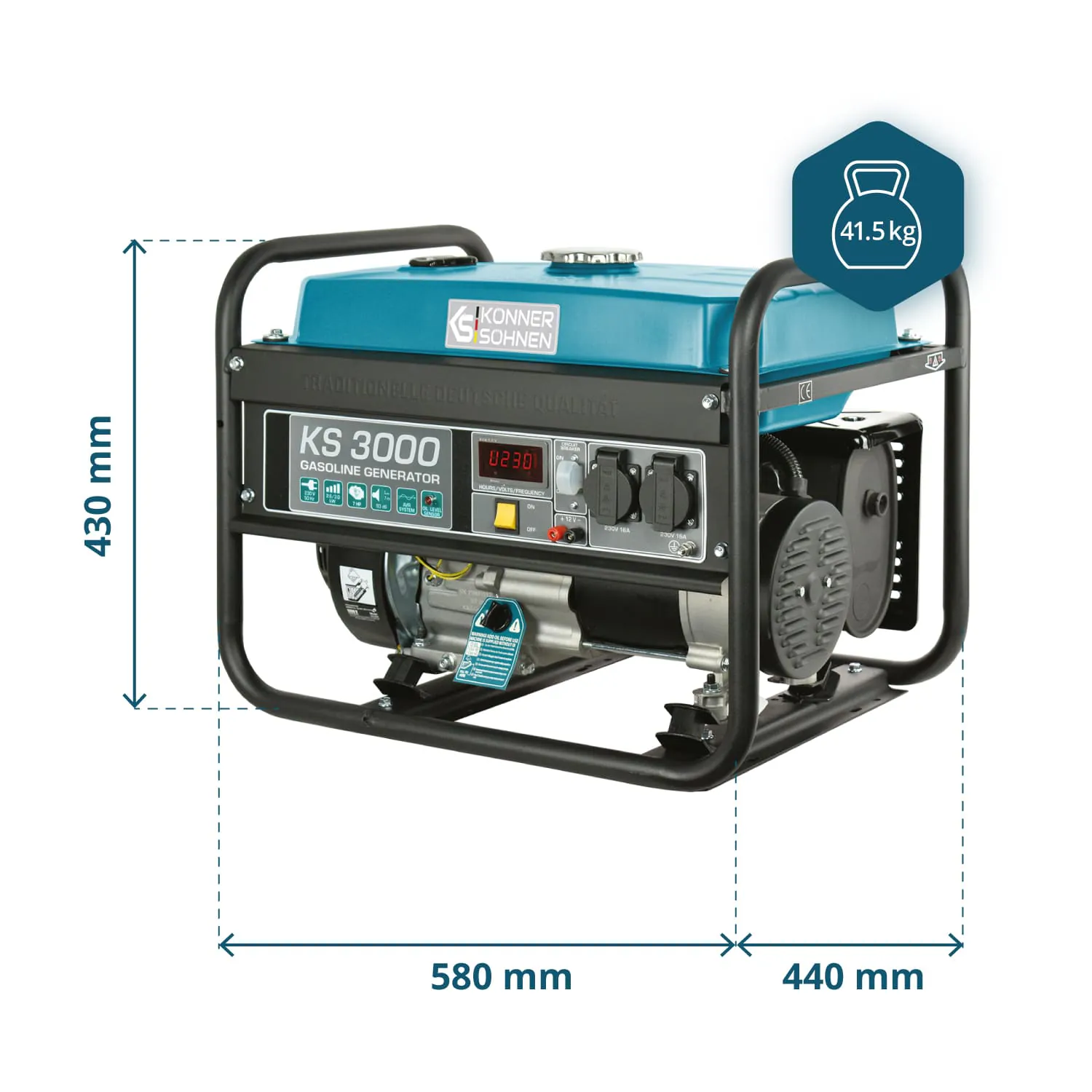 KS 3000 bensiinigeneraator on usaldusväärne ja praktiline energiaallikas. Sobib koduseks kasutamiseks ja välioludesse. Ideaalne suvilasse, ehitusplatsile või matkale. Toodetud Saksamaa kvaliteedistandardite järgi. Tootja on tuntud bränd Könner & Söhnen.