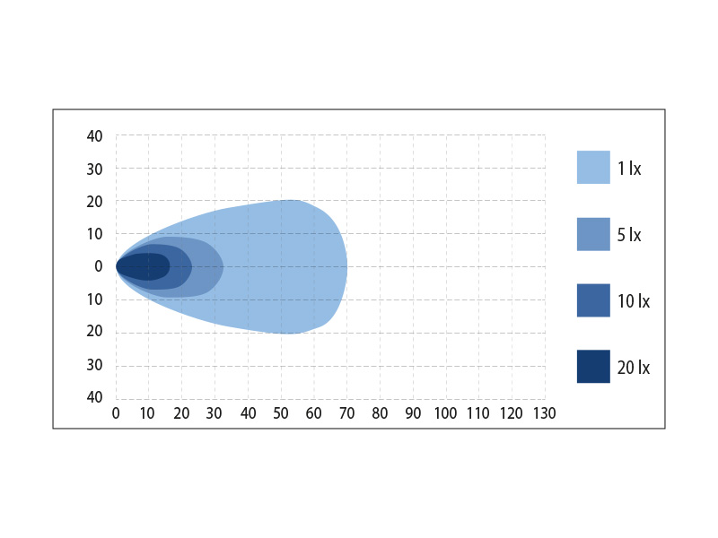 Valgusti valgusjaotus on projekteeritud kui laia vihuga. See tähendab, et valgus levib ühtlaselt suurele alale, muutes selle ideaalseks tööalade valgustamiseks, ehitusplatsidel või masinate juures töötamiseks. Lai valgusvihk aitab kaasa paremale nähtavusele ja ohutusele, eriti pimedatel või keerulistel tööaegadel.