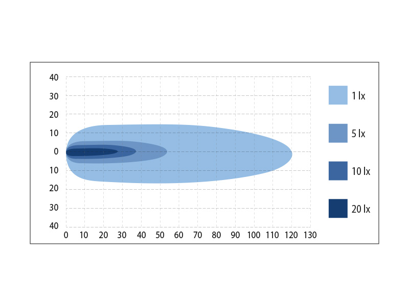 Valgustus on suunatud pigem punkt-/spot-vihku. See tähendab, et valgus keskendub konkreetsele alale või tööpiirkonnale, mis on eelis näiteks tööplatsil, masinate ümber või autodel, kus valgus peab jõudma kaugele.