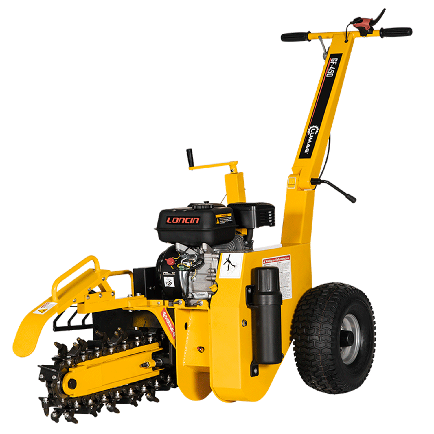 Seadme jõuallikaks on 1-silindriline 4-taktiline Loncin G200F bensiinimootor, mille töömaht on umbes 196 cm³ ja võimsus ca 4.1 kW. Mootorit käivitatakse käsitsi ning see tagab ühtlase ja piisava jõu kraavi lõikamiseks erinevates pinnasetingimustes ilma elektrivõrgu vajaduseta.