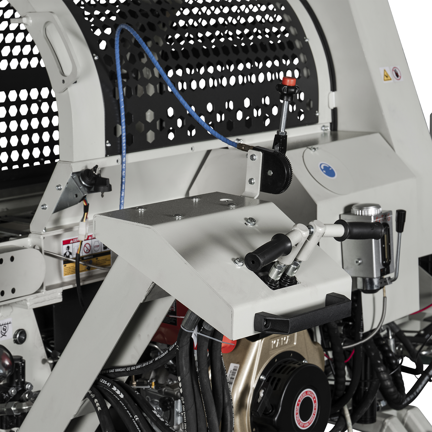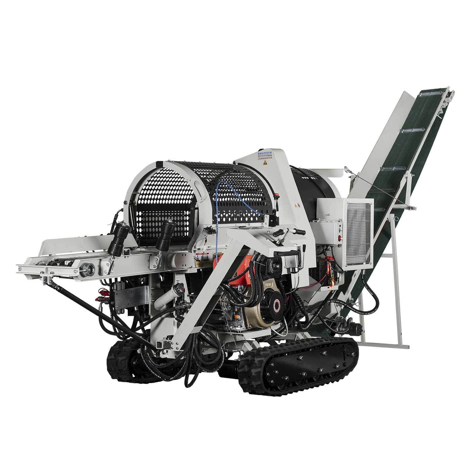 Masin on varustatud hüdraulilise konveieriga, mille pikkus on umbes 3.2 meetrit. Konveieri kiirus ligikaudu 0.7 m/s tagab sujuva halgude eemaldamise tööalast. Roomikveermik mõõtudega 1400 × 340 × 180 mm tagab stabiilsuse ja hea haarduvuse erinevatel pinnastel. Maksimaalne liikumiskiirus ulatub kuni 3.8 km/h.