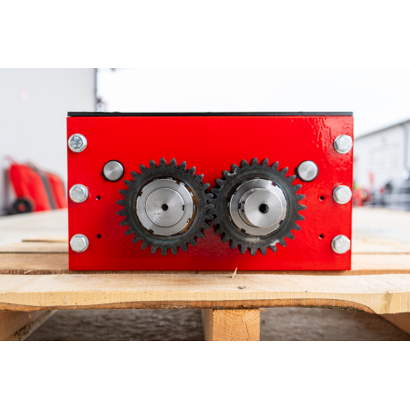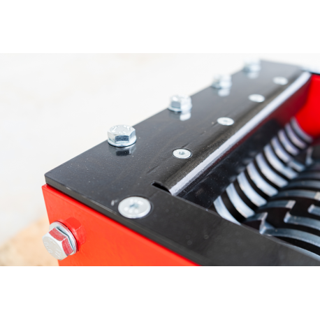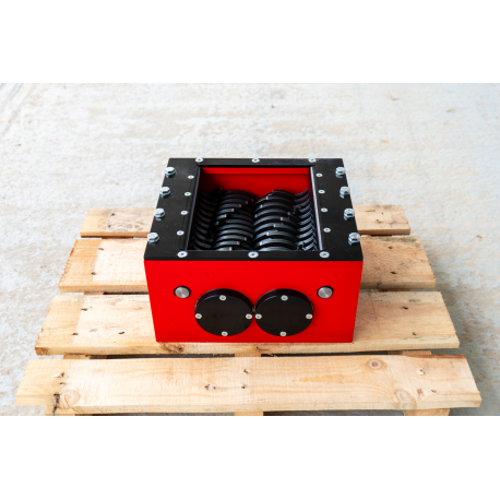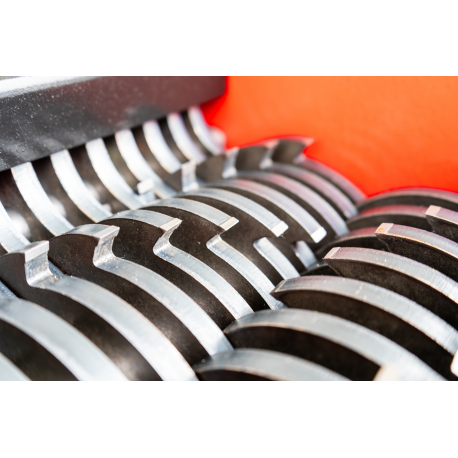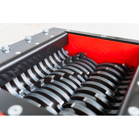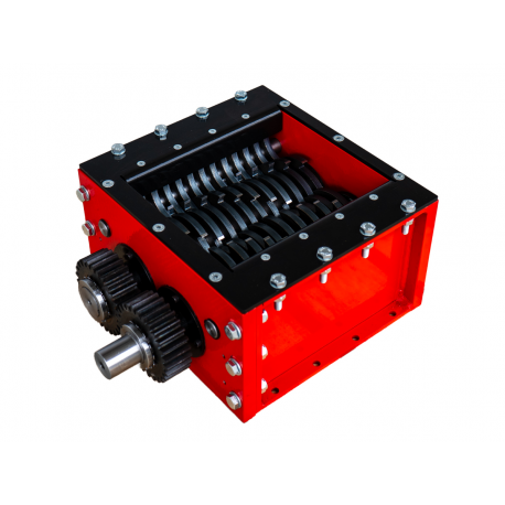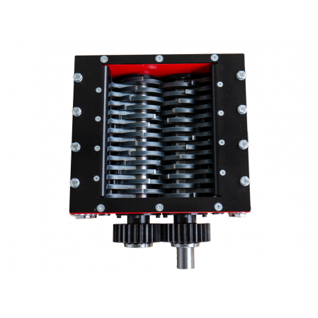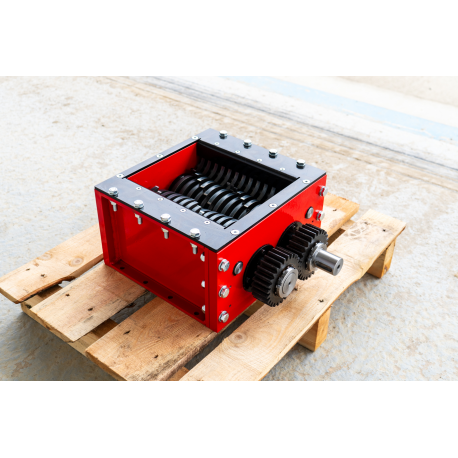Professionaalne ja tööstusliku vastupidavusega purustusmehhanism, mis on loodud erinevate materjalide tõhusaks ja kontrollitud purustamiseks. Tegemist on kompaktse, kuid väga tugeva seadmega, mille konstruktsioon põhineb täppis-CNC-töötlusel ja kvaliteetsetel terasdetailidel, tagades pika kasutusea ka intensiivse töö korral. Purusti südamikuks on vastassuunas pöörlevad lõikevõllid, millel asuvad spetsiaalse kujuga purustusterad, mis haaravad materjali ja lõikavad selle ühtlasteks fragmentideks.