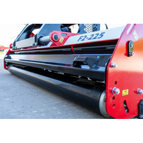 40 cm külgnihkega (-10 cm, +30 cm niiduki teljest) 225 cm laia niiduki F2-225 haakesüsteem sobib II kategooria haakeseadmega traktoritele. Tugev korpus tagab kogu seadme kõrge stabiilsuse ja vastupidavuse. Niidukitel on ühepoolne veosüsteem rihmülekandega, mida kaitsevad kaitsed. Veoülekanne edastab võimsust 60 hj kuni 120 hj ja soovitatav jõuvõtuvõlli kiirus (1-3/8″) on 540 p/min (või 1000 p/min ESIOSA-TAGA kinnituse korral), mis tekitab lõikevõlli kiiruseks 2380 p/min. Seade on varustatud reguleeritava maandusrulliga lõikekõrguse seadistamiseks ja reguleeritava väljalaskekattega, millel on 4 asendit. Sõidukiirust tuleks kohandada vastavalt maastikutingimustele, kuid see ei tohiks ületada 10 km/h.